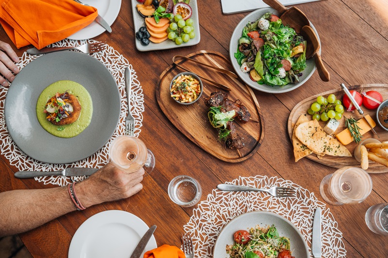 The camp is accessed by wooden walkways which lead to the main lounge area. The main area is a large thatched structure which has been beautifully designed to complement the natural surroundings. The cleverly designed bar, hewn from a single trunk of a sausage tree, is fully stocked with a wide variety of drinks. At the centre of the main lounge there are large steps leading down to a round boma with a fire pit. The small library boasts comfortable sofas, but most importantly has great views over the fertile plains. In addition to the yoga mats in each tent, there is a gym with a variety of machines including a treadmill and static bike. Brunches and dinners are served in the dining room which is a large thatched open-sided room, with superb views.