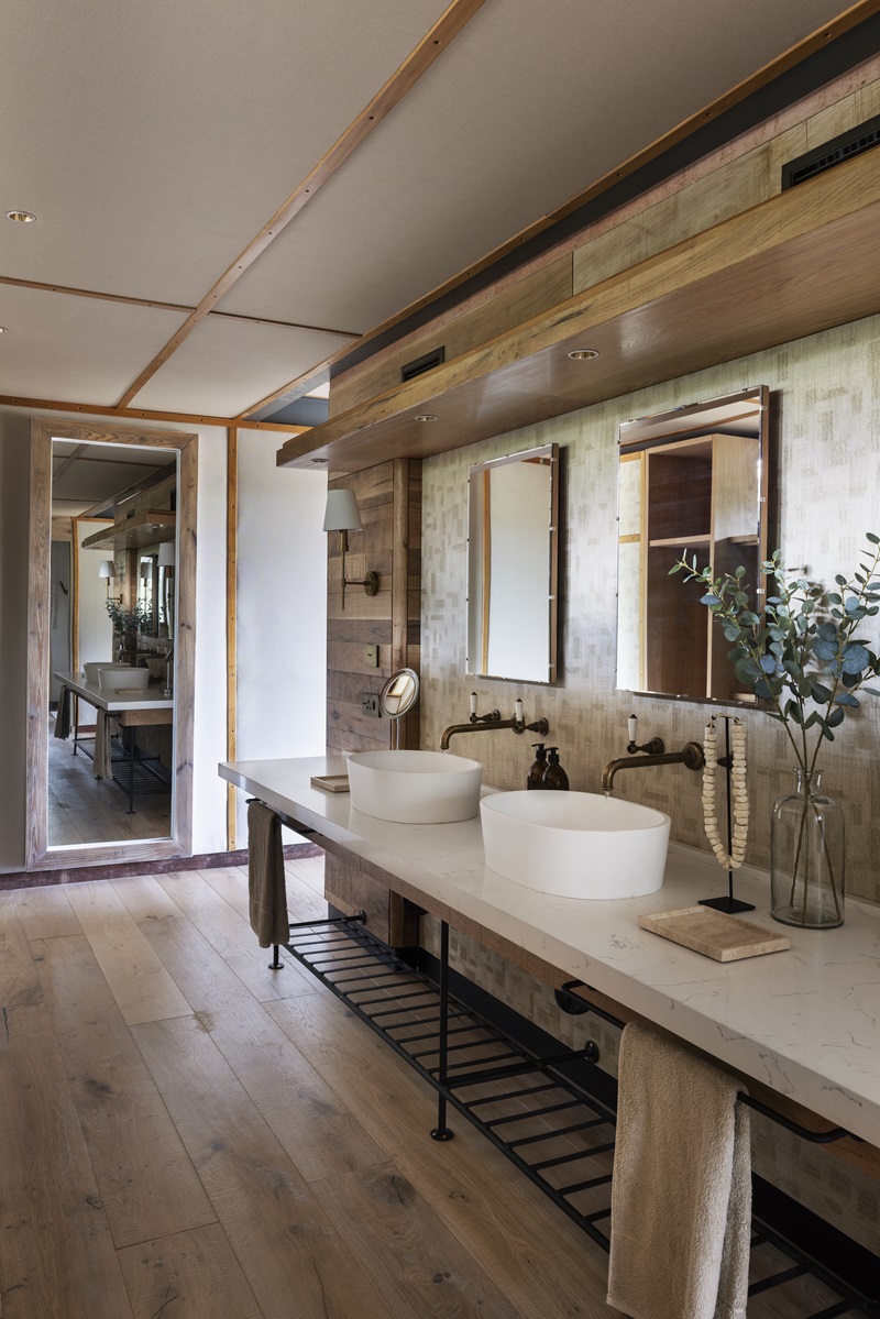 The colours create a serene sanctuary – with neutral tones and large windows to maximise the views. Each tent has a private viewing deck, as well as en suite bathrooms with both an indoor and beautifully designed outdoor shower.