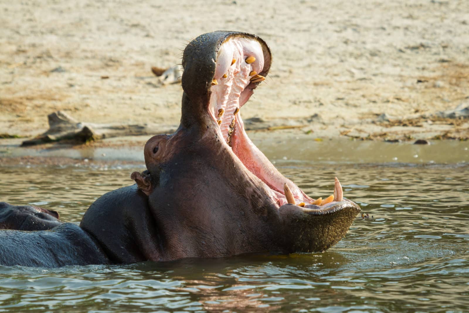 The sweeping floodplains are home to large herds of elephant and buffalo, as well as many other animals which come to the quiet banks to drink.