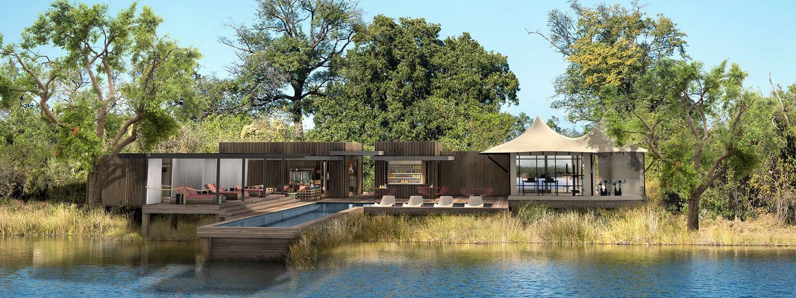 Little DumaTau has its own dining and lounge areas with fabulous views over the Osprey lagoon. Guests will be able to learn more about the environmental research projects run in the Linyanti Private Reserve and elephant conservation. Little DumaTau shares DumaTau’s wellness space, gym, spa, deli and trading store. The lap pool is an idyllic place to relax on the shaded deck.