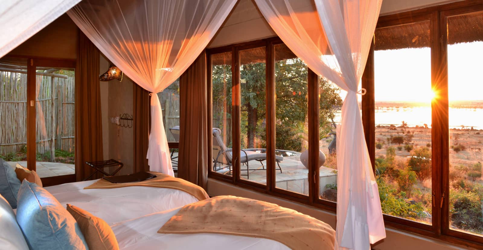 Ngoma Safari Lodge has eight luxury river-facing suites located on a private concession within the Chobe Forest Reserve. Perched on the fringe of a plateau the views are some of the best in Chobe, certainly the sunset views are amount the best to be found in Botswana. The entire lodge has been built to make the most of these views, the open sided main areas allow you to soak up the Chobe river and plains over your meals, drinks and while swimming. Aimed at adults rather than families this is a peaceful Chobe lodge, ideal for couples or solo travellers.