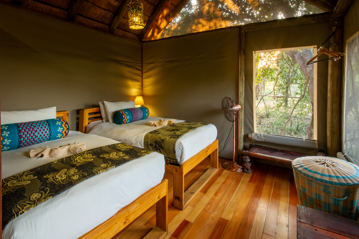 For visitors staying three nights or more at Nxamaseri the Tsodilo Hills Sleep-Out Camp is offered – a new experience from September 2024 and certainly the best way to explore this sacred site. The Tsodilo Hills Sleep-Out Camp consists of three twin/double pods (accommodating a max of 2 people) as well as a family unit (accommodating a max of 2 adults and 2 children, under 16 years). Accommodation is basic but comfortable, the canvas pods are set on raised decks and simple bathrooms with bush toilets and bucket showers are located next door.