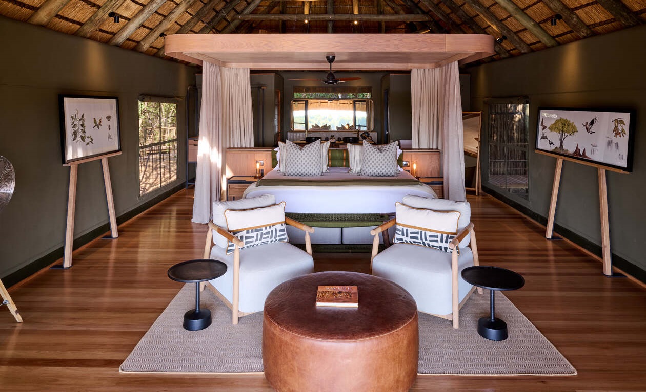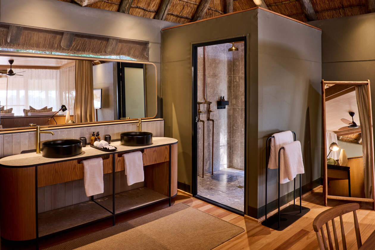 Savute Safari Lodge has eleven rooms and one family room, each very spacious and well-appointed on elevated wooden platforms with a private deck. The rooms are tastefully decorated with neutral tones and have plenty of thoughtful details to ensure a very comfortable stay.