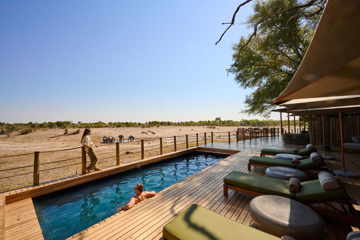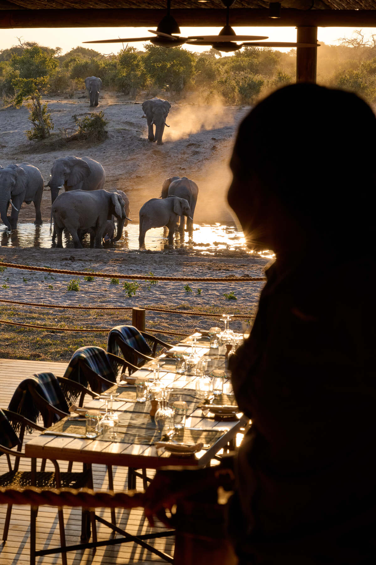 The main area at Savute Safari Lodge steals the show, with excellent views of the waterhole and channel to be enjoyed from a number of cleverly designed areas, depending on whether you wish to hide away quietly tucked up in an arm chair, from a stool on the viewing hide or from the dining table as you enjoy your meals. It is the friendly focal point day and night.