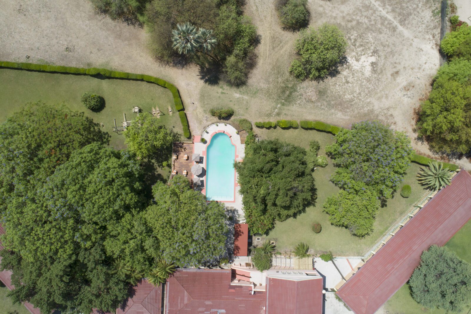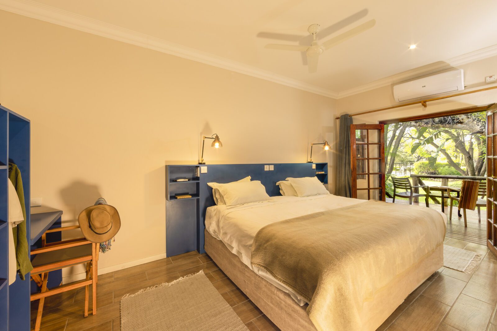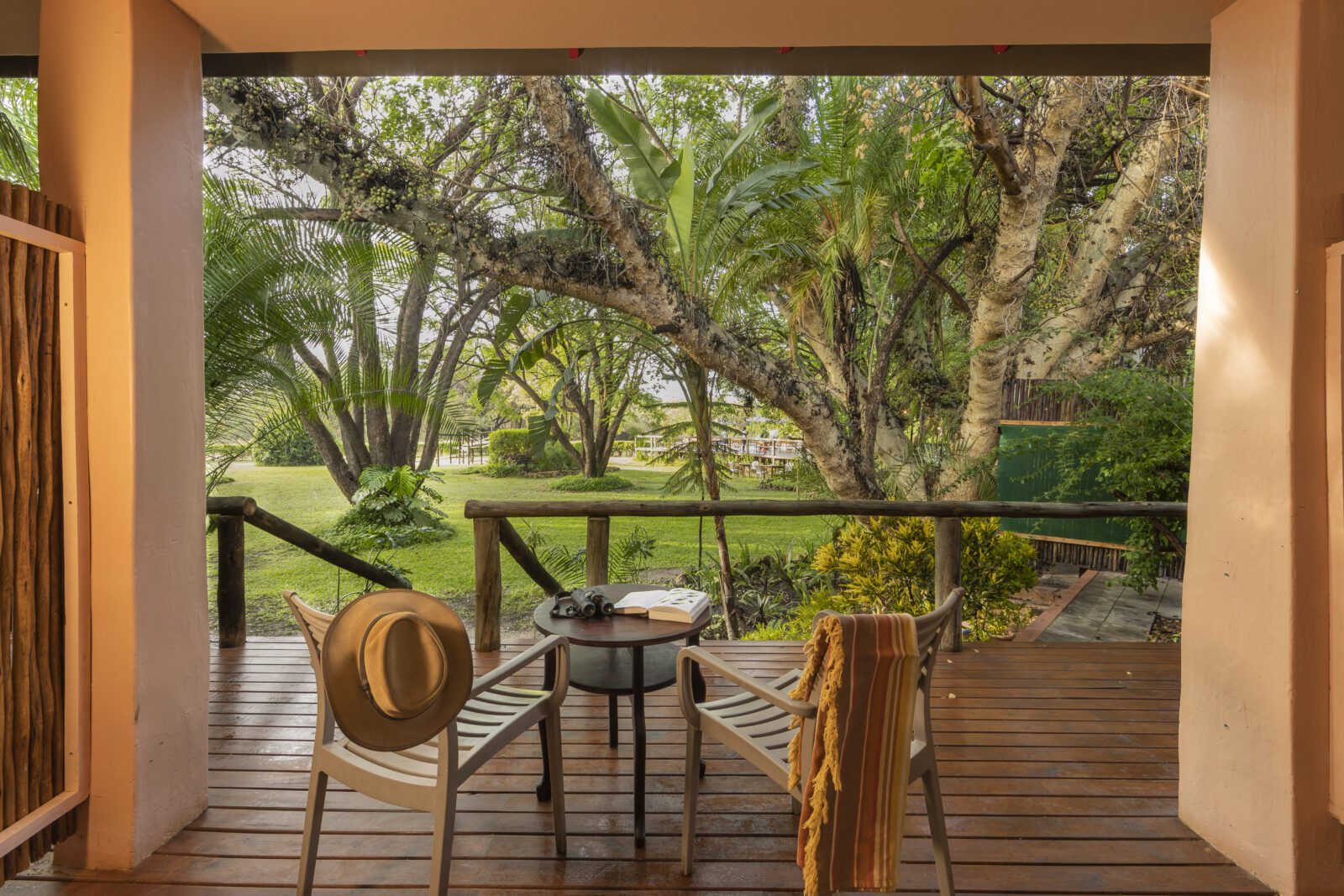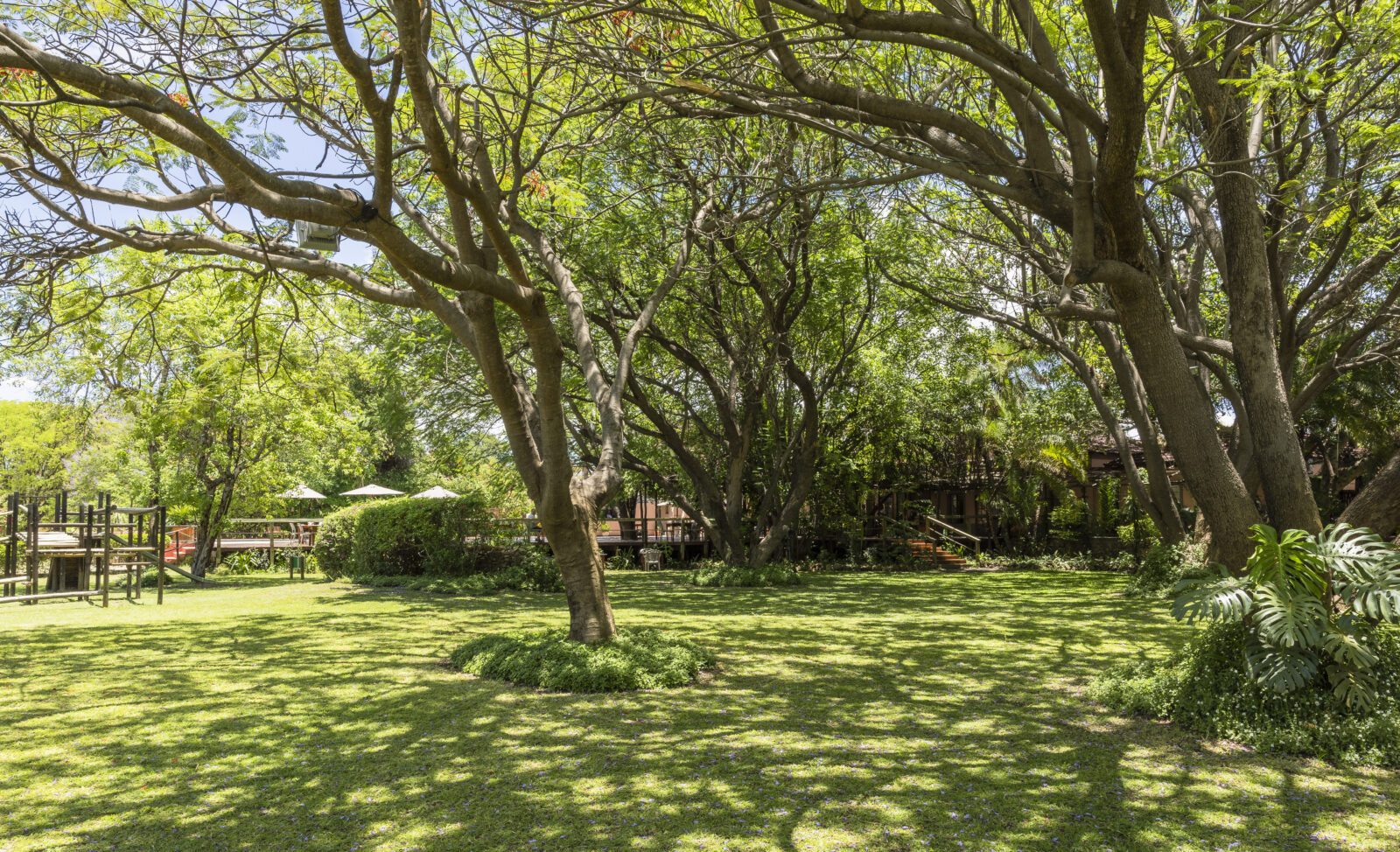 The rooms have a simple and bright style- all rooms are ensuite and have air conditioning with a verandah looking out onto the lovely gardens. The restaurant has a decked terrace overlooking the large pool and is shaded by lovely old trees – this is one of the nicest restaurant settings in Maun.