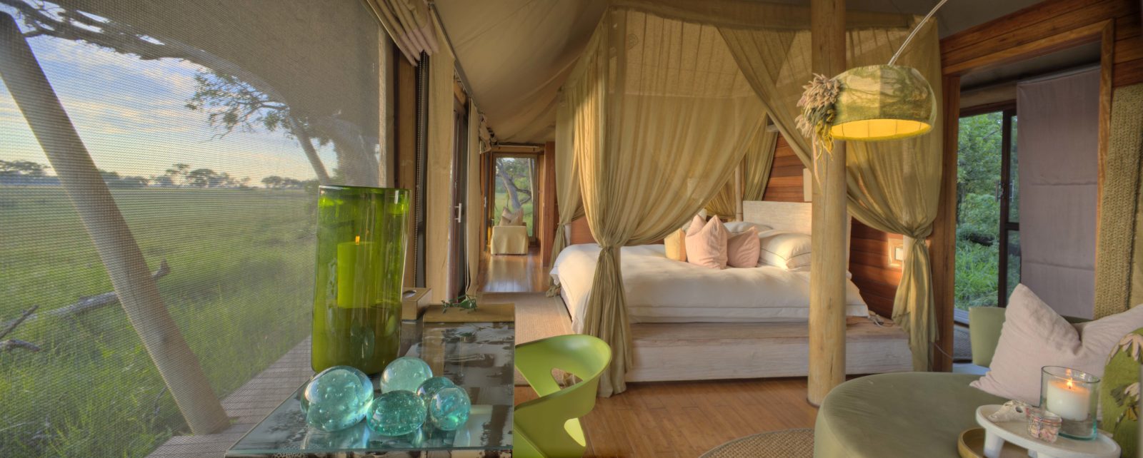Meaning “Place of the Giraffe,” Nxabega Okavango Tented Camp is known for its luxurious and elegant tented accommodation with breath-taking views of the Okavango Delta. This is an intimate, stylish camp which offers the experience of water and wildlife on twice-daily game-drives in open 4×4 safari vehicles, mokoro and powerboat excursions (water levels permitting).